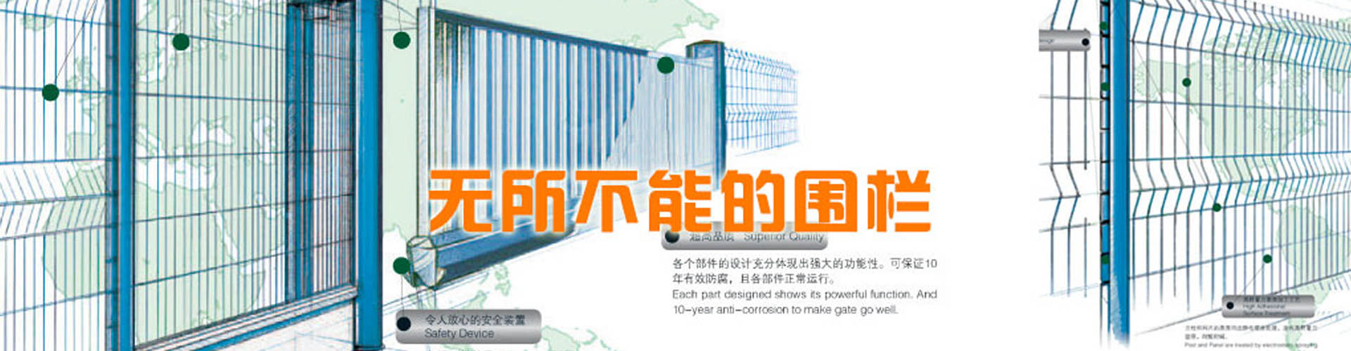 河北思固爾圍欄設(shè)施有限公司致力于專業(yè)的場地防護(hù)產(chǎn)品的研發(fā)與生產(chǎn),為全球客戶提供優(yōu)質(zhì)先進(jìn)的金屬圍欄、全鋼結(jié)構(gòu)大門和其他防護(hù)產(chǎn)品及服務(wù)。思固爾圍欄以一種目前市場上成熟的設(shè)計理念將立柱與焊網(wǎng)結(jié)合在一起,可以應(yīng)廣大客戶的要求提供理想的解決方案。公司于2002年通過ISO9001質(zhì)量管理體系認(rèn)證;2004年被評為項目建設(shè)先進(jìn)單位,信用優(yōu)良企業(yè),科技進(jìn)步先進(jìn)單位;2006年底公司取得了自營出口權(quán);2006年5月10日思固爾圍欄獲得中華人民共和國國家知識產(chǎn)權(quán)局頒發(fā)的實用新型專利證書目前,公司產(chǎn)品銷售網(wǎng)絡(luò)已遍及新疆、黑龍江、遼寧、江蘇、內(nèi)蒙古、海南、廣西、廣東、湖南、湖北、上海、福建、浙江、河南、北京等全國各地,并出口至加拿大、烏克蘭、伊朗、新西蘭、泰國、俄羅斯、南非、印度、巴基斯坦、韓國等30多個國家和地區(qū)。今天的思固爾已發(fā)展成集研發(fā)、設(shè)計、制造、貿(mào)易為一體的綜合性實體公司。思固爾人一如既往地秉承之前的創(chuàng)業(yè)精神,引進(jìn)與運(yùn)用現(xiàn)代的管理模式,迎合未來的市場需求,竭力滿足不同客戶的需求,力爭早日把思固爾打造成中國的民族品牌!-----------------------------------------...